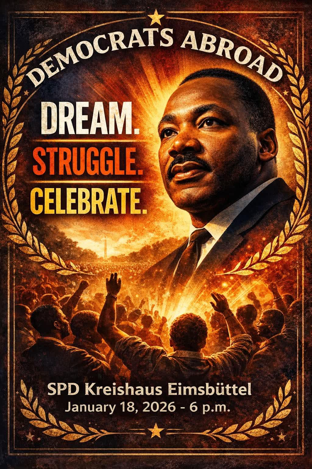 MLK Weekend Community Night Sunday, January 18, 2026 SPD Kreishaus Eimsbüttel | Hamburg Organized by Democrats Abroad Hamburg & Northern Germany