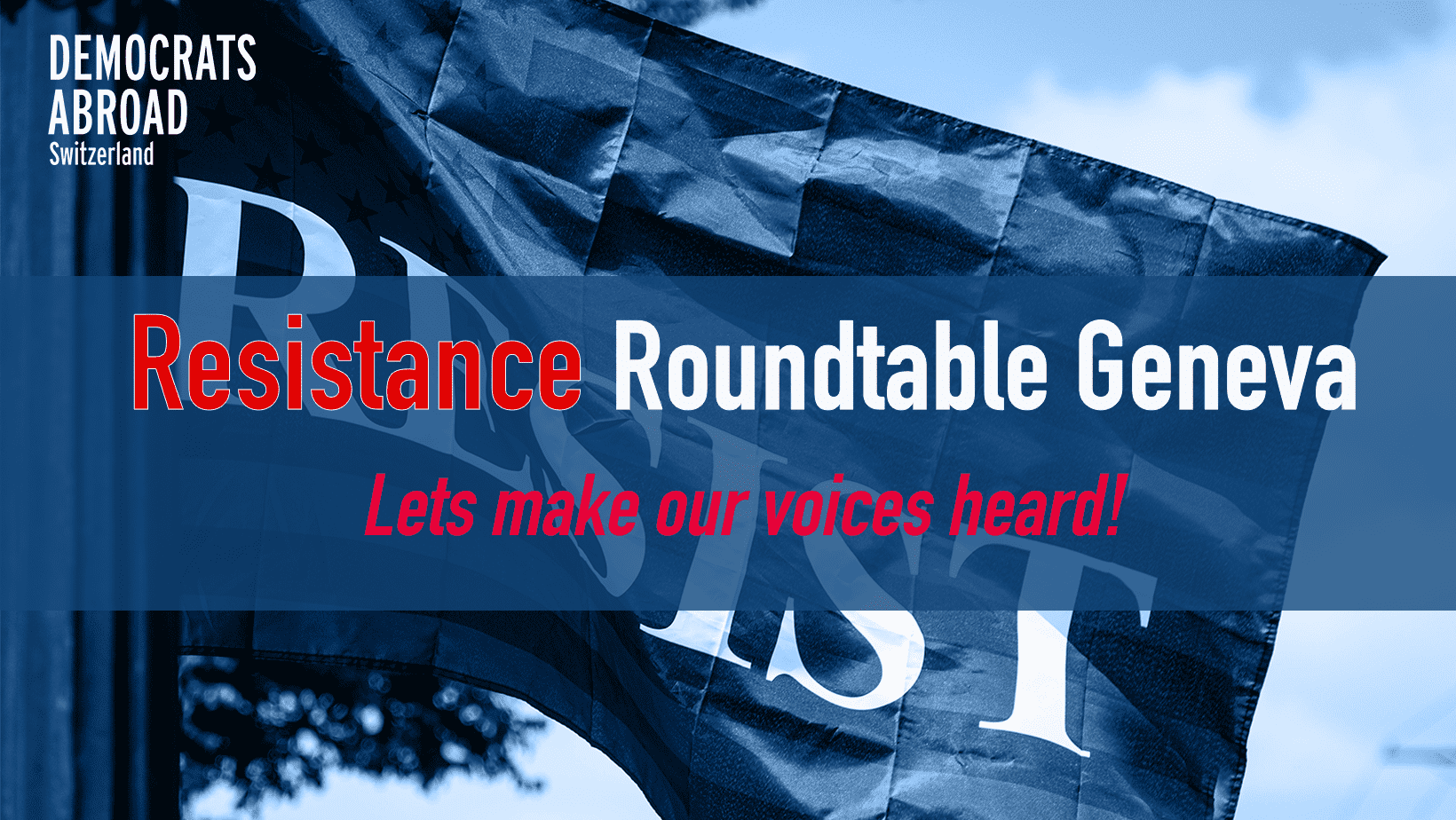The work continues: join us at our Resistance Roundtable, led by Democrats Abroad Switzerland Member At Large, Bonnie, to discuss and develop together the skills to make your voice heard. We will choose one or two issues and tactics as a focus. Let's work together to fight back against the authoritarian breakthrough happening in the US; bring your outrage and we’ll bring the inspiration and tools!