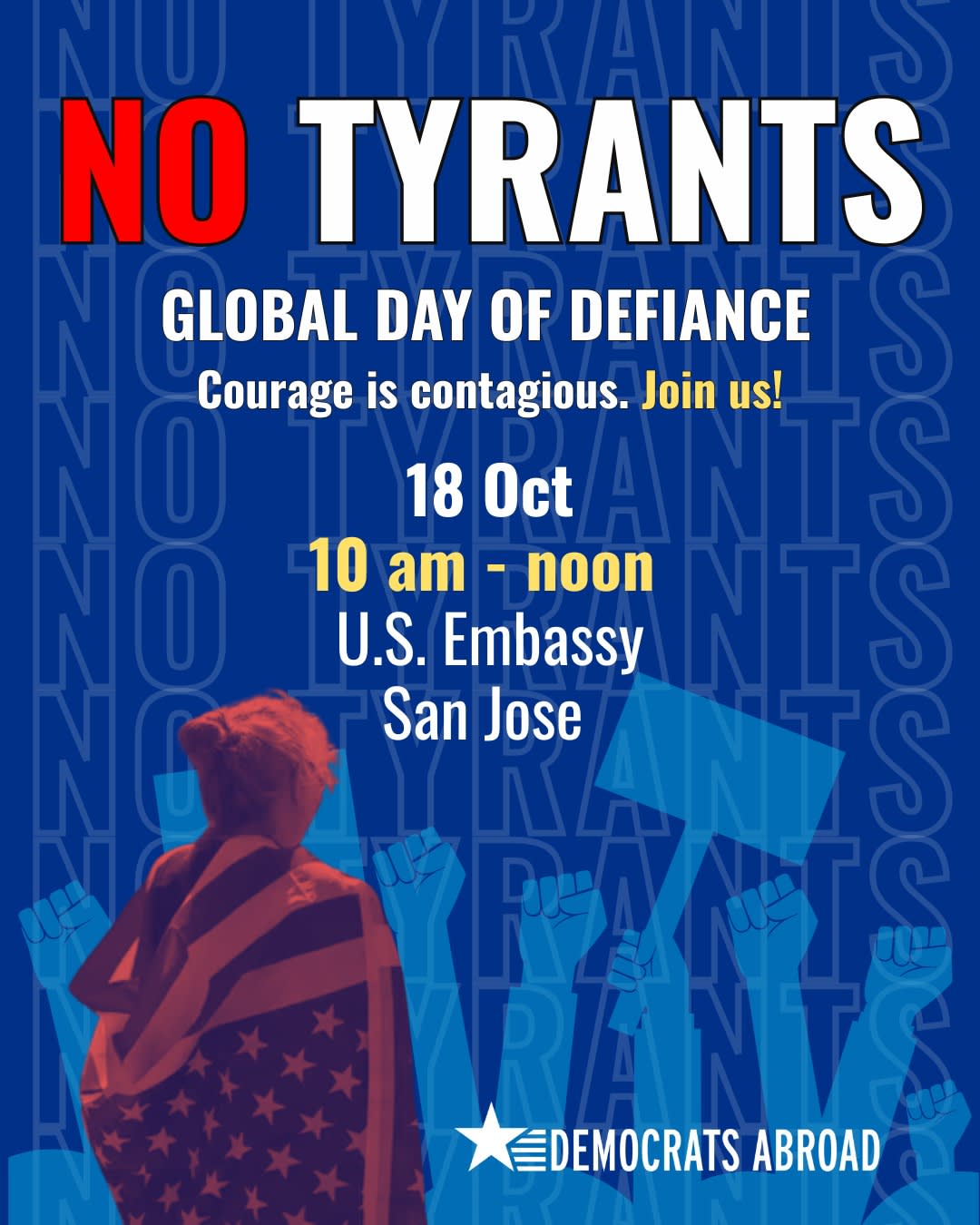 Around the world, people are rising up—marching, rallying, and protesting—to demand an end to the chaos and to build a movement strong enough to stop the looting of our country. Join Democrats Abroad Costa Rica as we gather in front of the U.S. Embassy to stand for democracy and defend our inalienable rights.