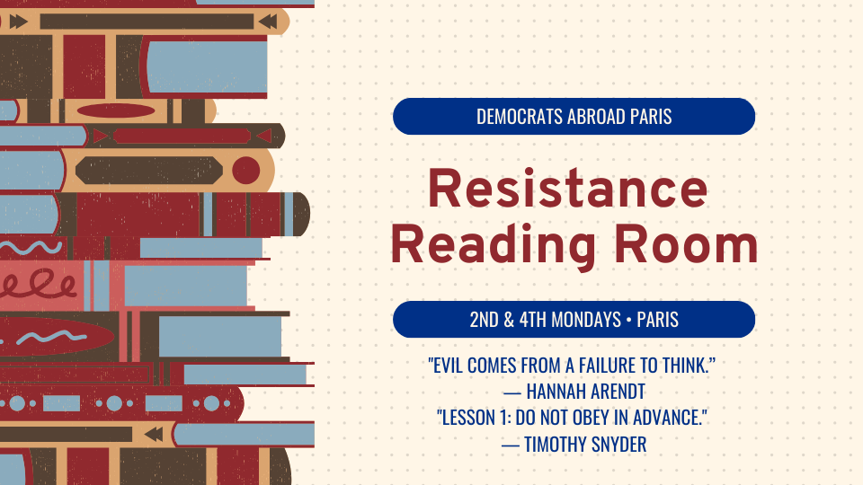 The Resistance is now. Join us twice-monthly as we share and discuss relevant readings for our moment in US politics, and what we can do from Paris — with eyes on helping Democrats taking back House and Senate in 2026. Brought to you by the Veterans and Military Families Caucus, the Diversity Caucus, and the Paris Chapter of DA France.