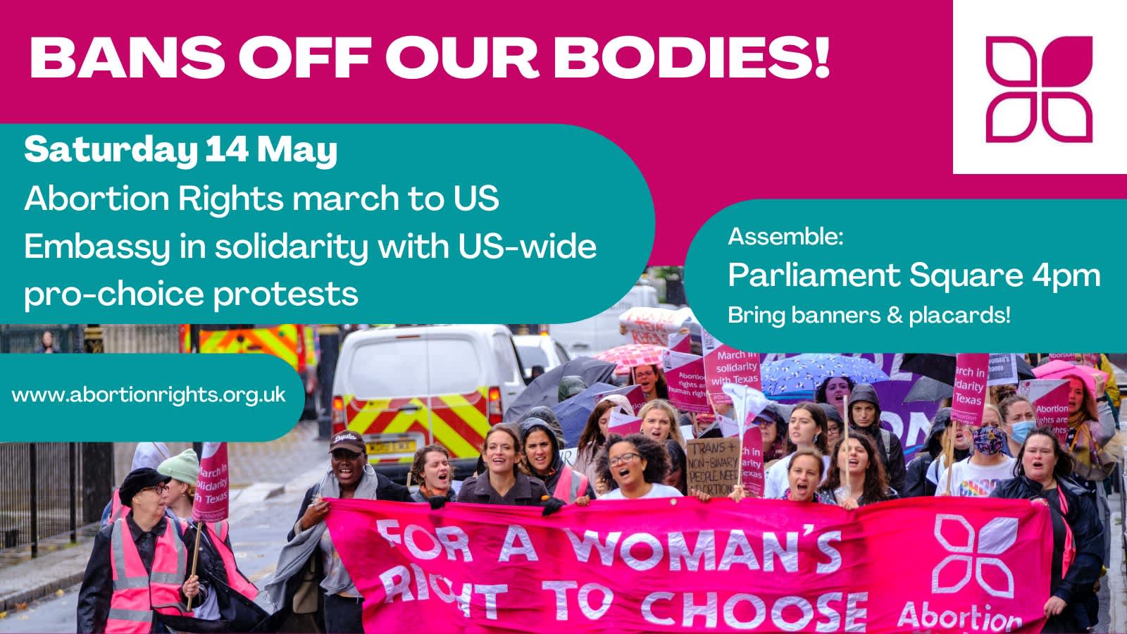 In collaboration with Abortion Rights UK, we will march from Parliament Square to the US Embassy in Nine Elms.