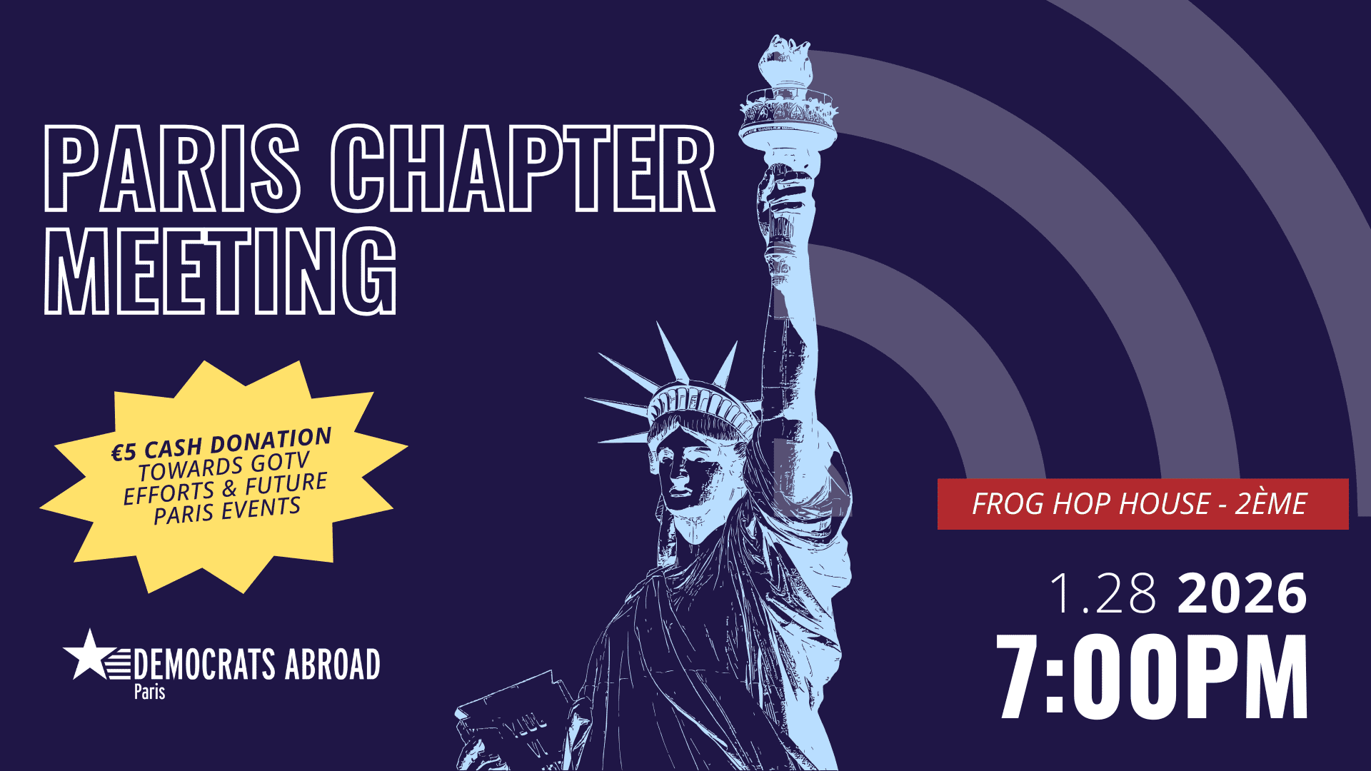 🎯 We’re also currently recruiting new members to join our growing team and help steer our work through 2026. If you’re interested in leadership opportunities, this is your moment! Attend to find out how you can contribute to Getting Out the Vote (GOTV) and influence efforts led by Democrats Abroad Paris.