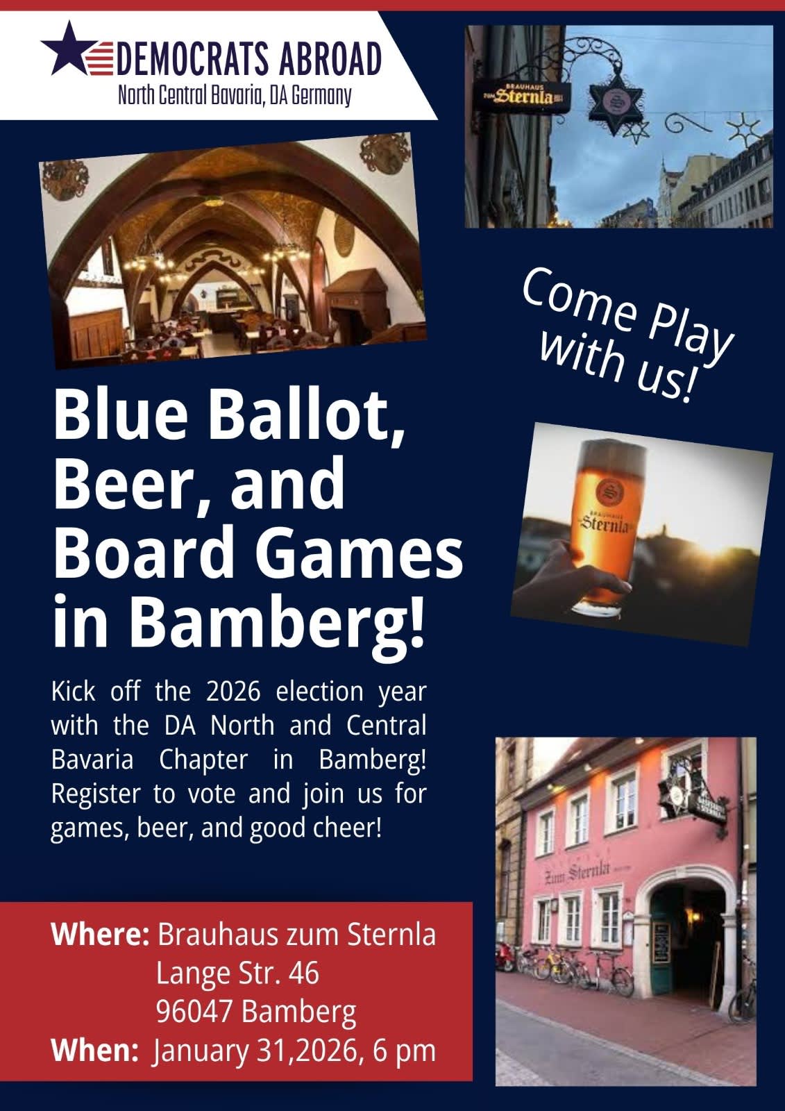 Kick off the 2026 election year with the DA North and Central Bavaria Chapter at Brauhaus zum Sternla in Bamberg!