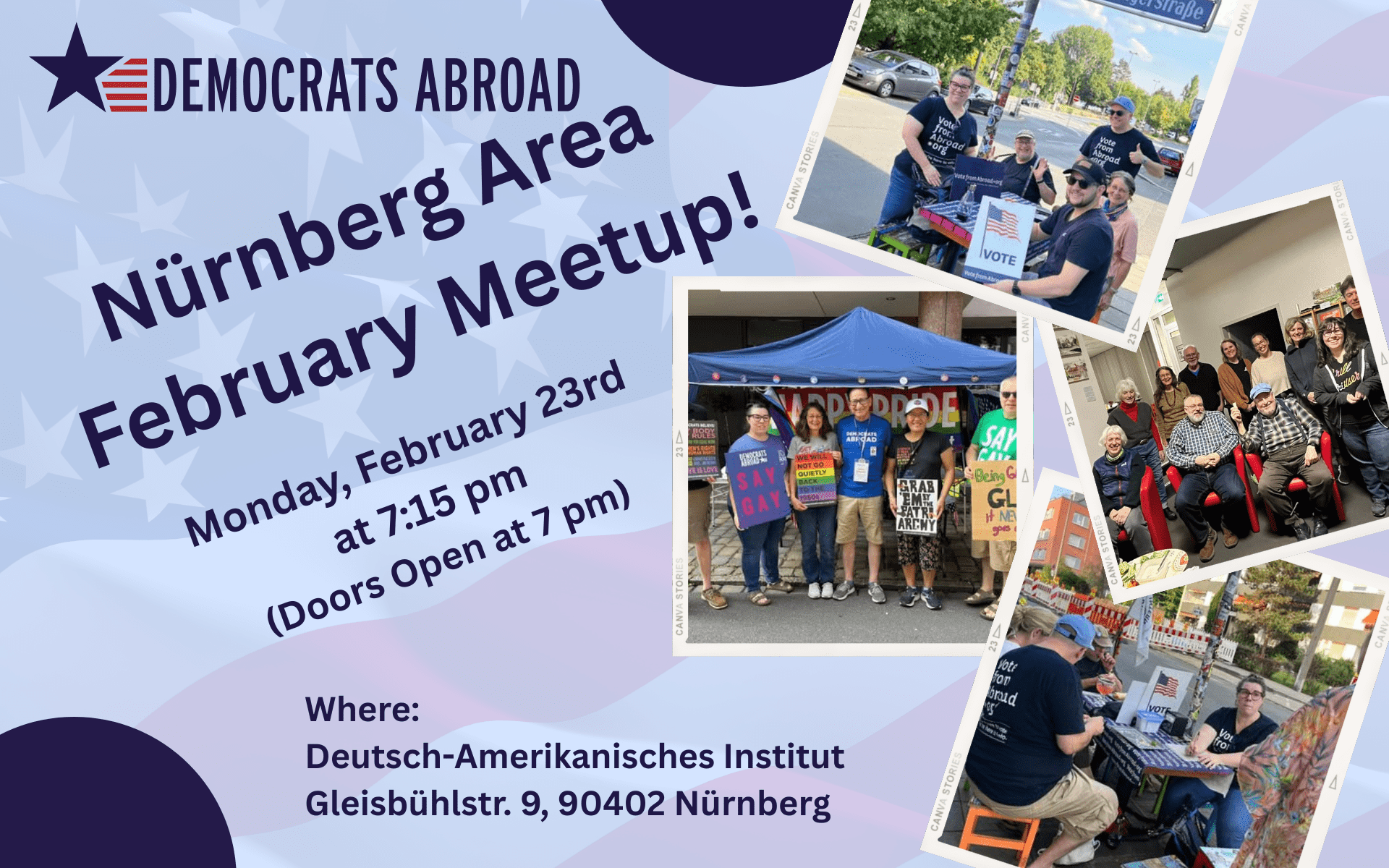 As we continue into this pivotal election year, our February Nürnberg meet-up will build on the conversations we began in January. We’ll check in with one another, reflect on the evolving political landscape, and talk concretely about what we can—and should—be doing in the months ahead.