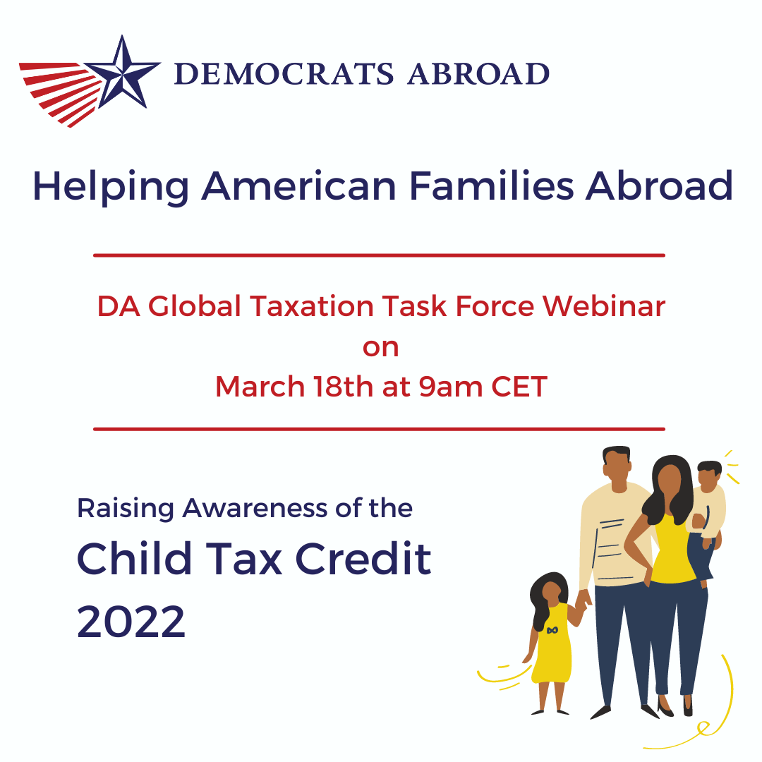The Taxation Task Force will be hosting a webinar on Friday, March 18th called Helping American Families Abroad receive the Child Tax Credit.