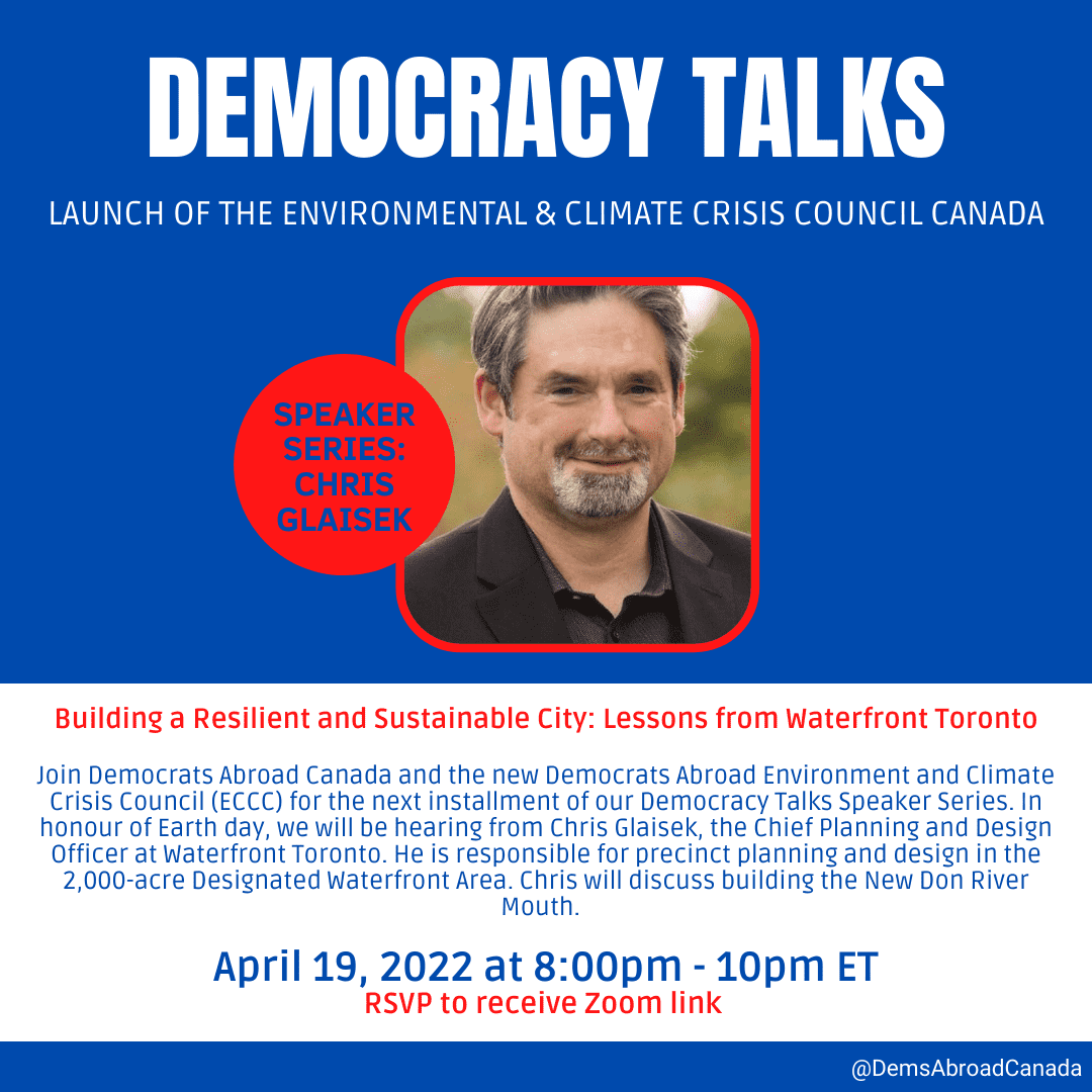 Join Democrats Abroad Canada and the new Democrats Abroad Environment and Climate Crisis Council (ECCC) for the next installment of our Democracy Talks Speaker Series.