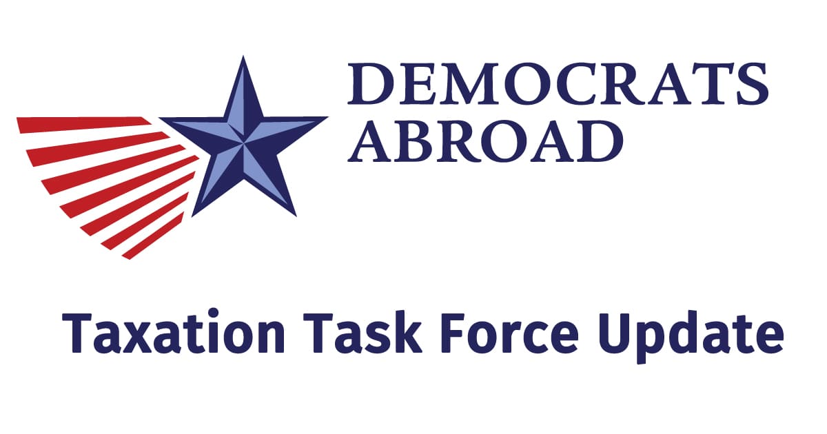 Join in this call to hear what the Democrats Abroad Taxation Tax Force has been up to and how we all can help to push for rational tax reform policy.