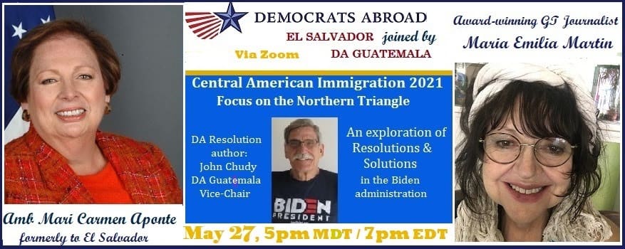 Our speaker event is centered around the DA Resolution:Central American Immigration 2021, which focuses on the Northern Triangle Countries of El Salvador, Guatemala, and Honduras, authored by John Chudy, Vice Chair of Democrats Abroad Guatemala. We're fortunate to have his collaboration and for having him join us personally. John will be presenting the resolution, which provides much food for thought - and discussion!