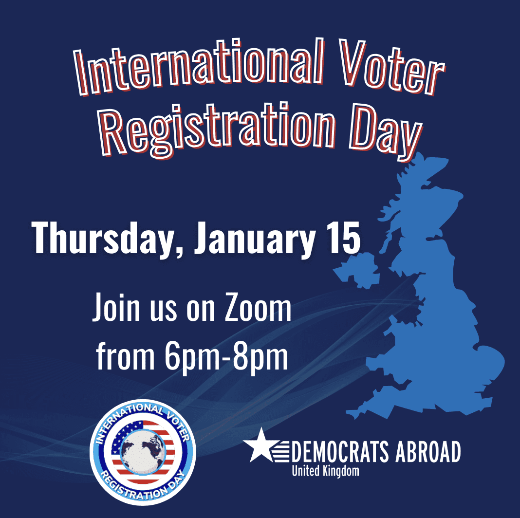 Can’t travel to an event? Then join us on Zoom! We will gather virtually on Thursday, January 15, from 6 to 8 pm for International Voter Registration Day.