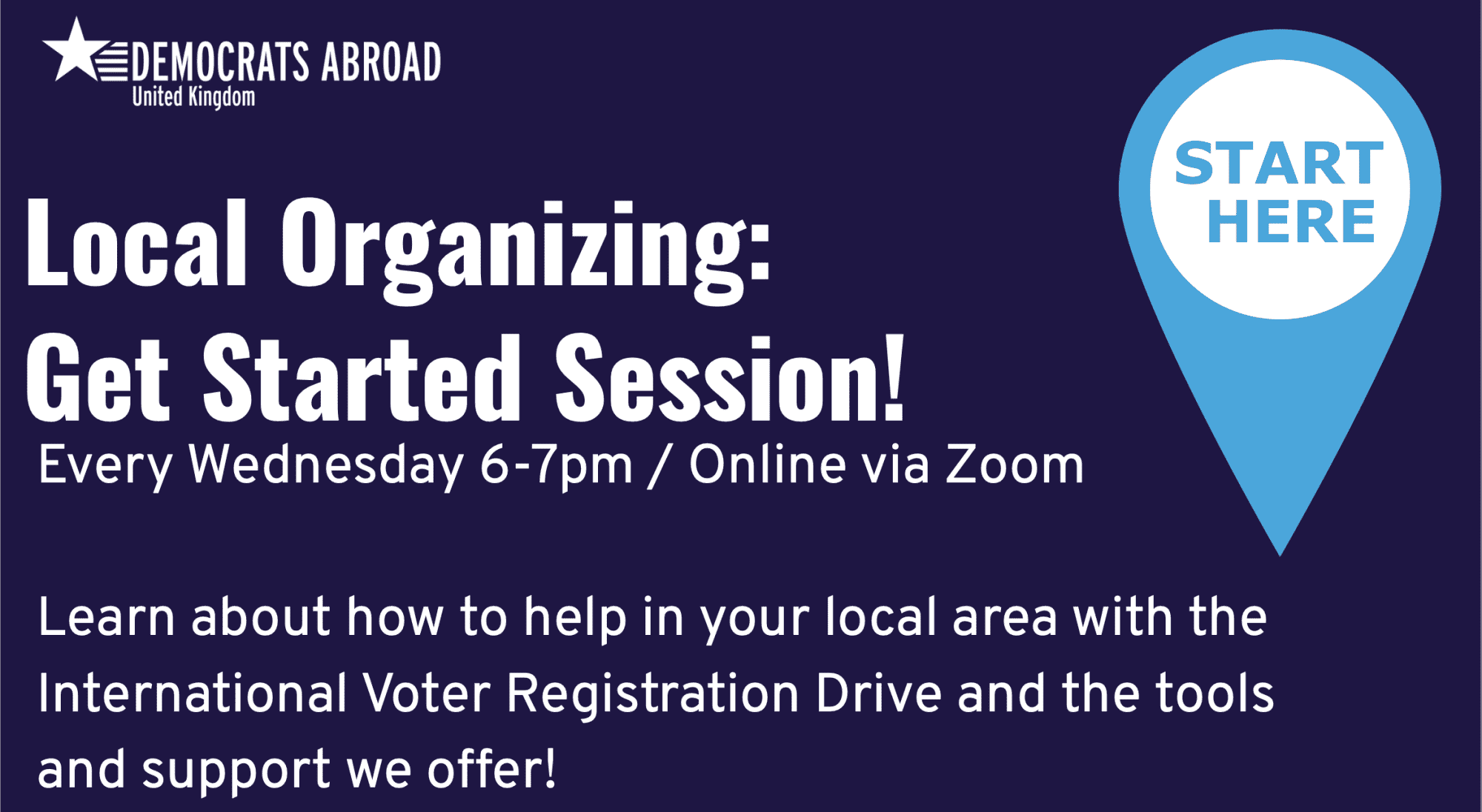 Want to get to know fellow Democrats Abroad members in your local area? Want to put angst into action and make sure Americans in your area vote in the midterms? Join one of our Local Organising: Get Started Sessions, held every Wednesday from 6:00–7:00pm.