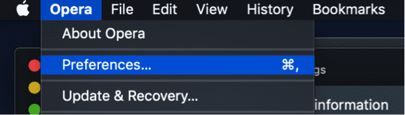 - After installing and launching Opera, go to the “Opera” dropdown on the top left of your screen and select “Preferences”.
