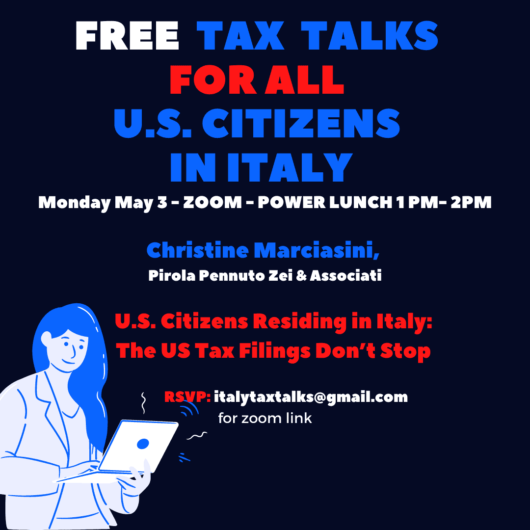 This series of talks will focus on issues for US citizens residing in Italy, but everyone is free to join us.