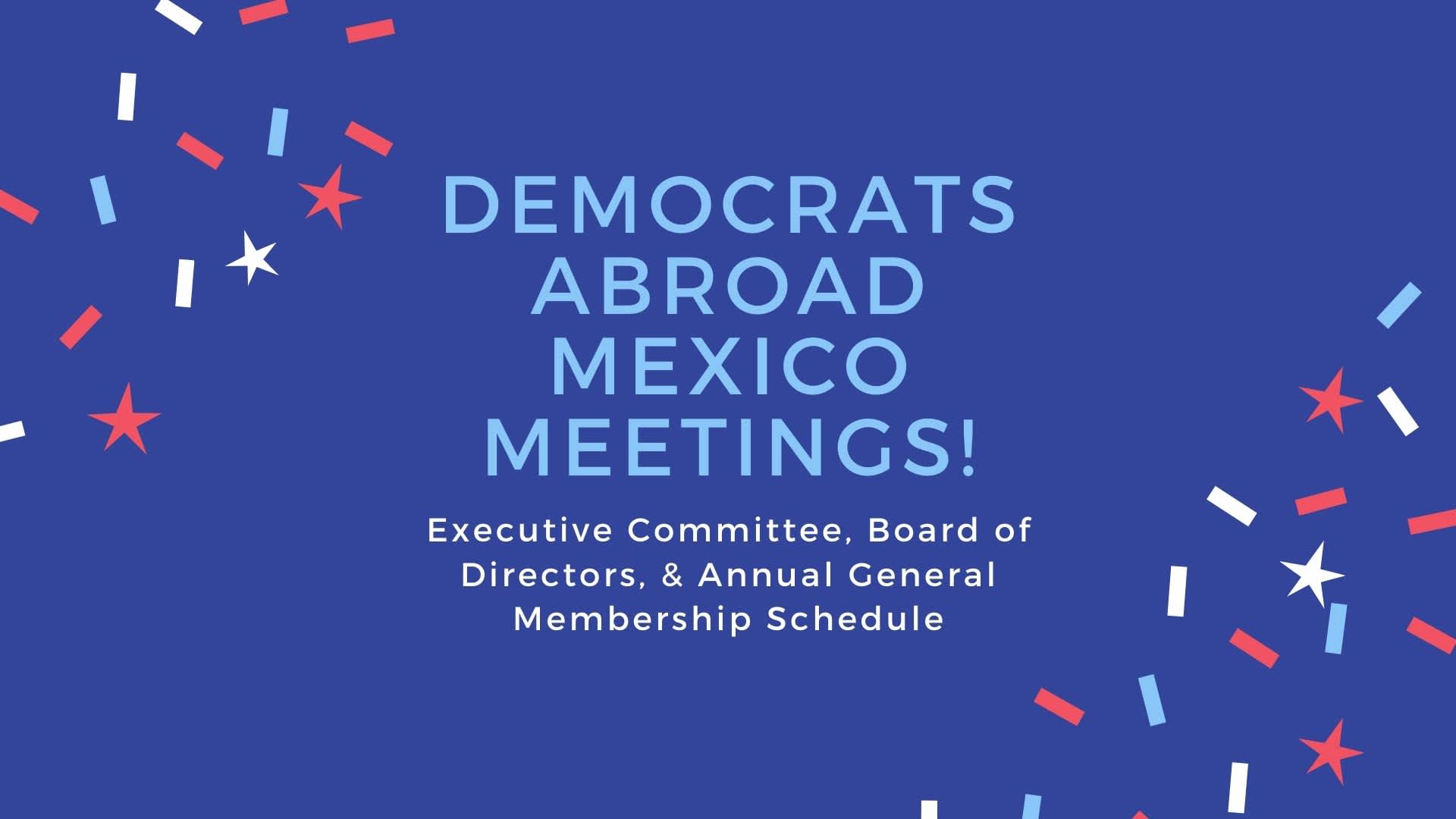 In order to comply with Articles 14.1 and 14.4 of the Democrats Abroad Mexico Bylaws, the following schedule is shared in order to ensure that members are given notice of and an opportunity to participate in meetings of the Executive Committee and the Board of Directors.