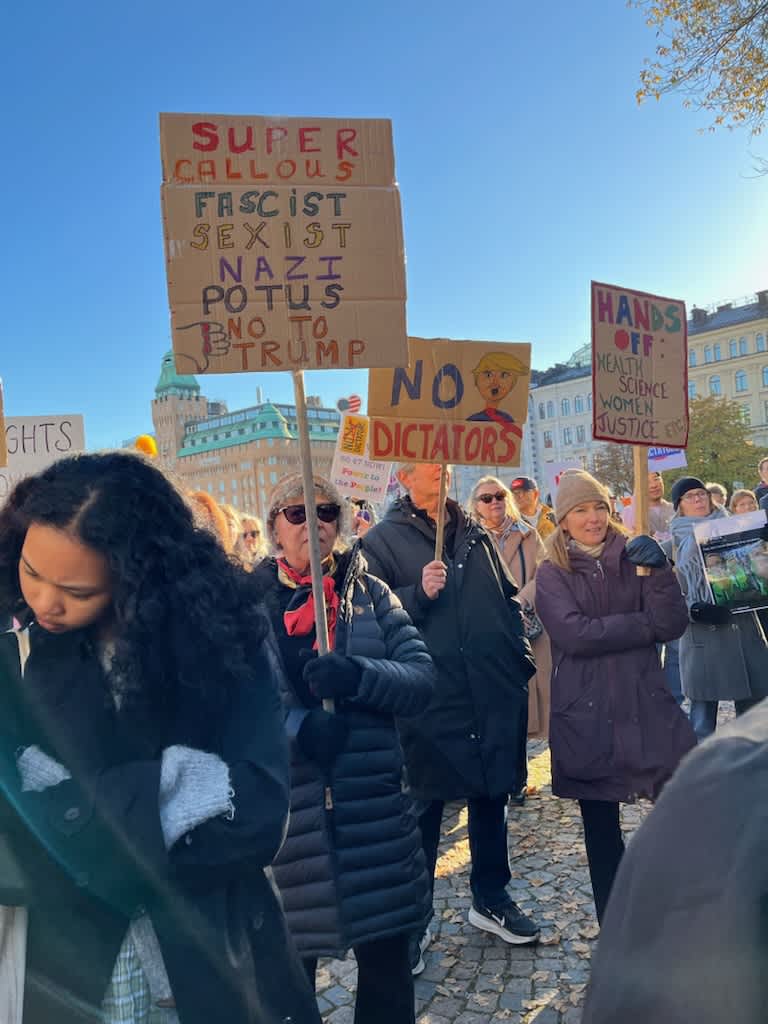 "Democracy has always had its roots in the people; and, in the face of inequities, corruption, and even fascism, people take to the streets to protest. So it was on October 18, 2025, in the USA and around the world, including Stockholm and Malmö, Sweden. People from all walks of life gathered to raise their voices in protest of the Trump administration's policies and divisiveness. Among the criticisms were executive overreach, rampant inflation, risks for climate change, cuts to essential government programs, and a shutdown with unprecedented punishment (no back pay) for government workers. The spirit of the protests was positive, with some people dressed in inflatable animal costumes, but the tone was serious. It is time to take our country back. It is time to rally around the hope of a better future."