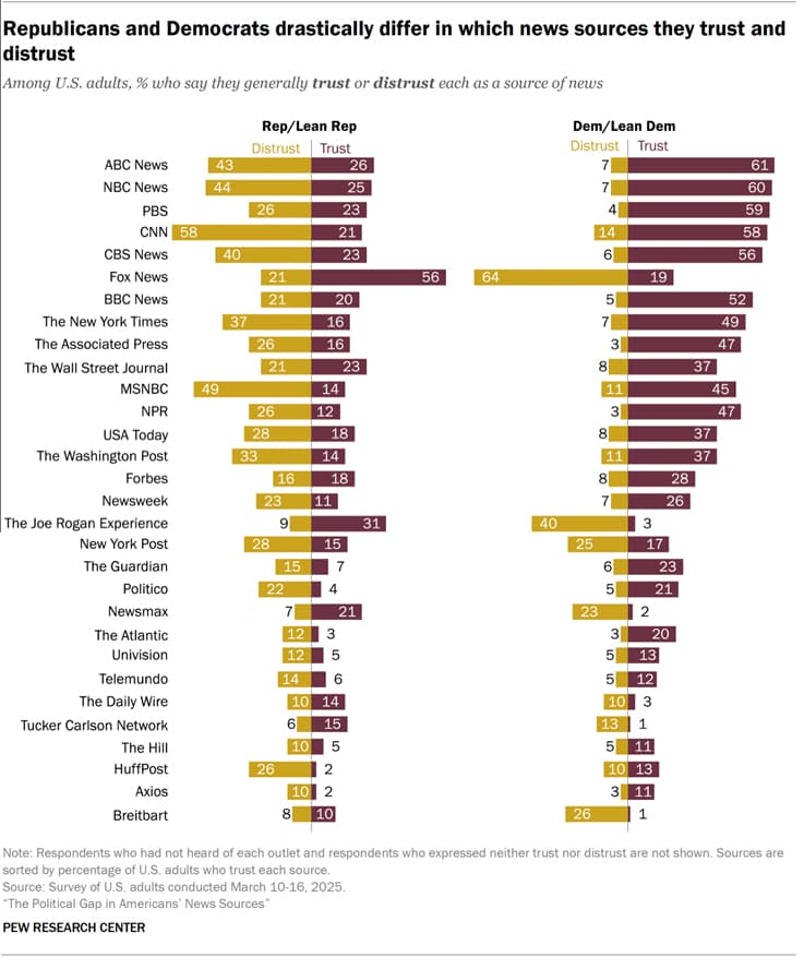 The survey matches the trend seen among sophisticated voters across the U.S. Namely, that Democrats get their information from more sources and have more trust in major media than do Republicans.