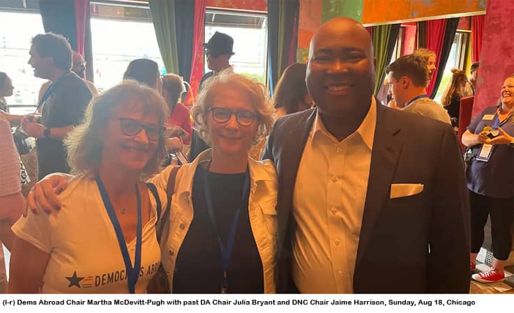 - Sunday’s The Weekend on MSNBC has an overview PLUS talk with DNC Chair Harrison, including importance of Dems Abroad.