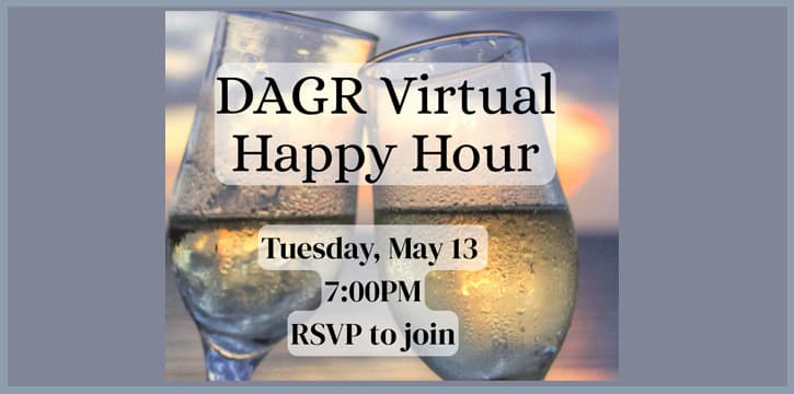 Grab your favorite beverage and join the next virtual DAGR Happy Hour on Tuesday, May 13th, 7:00 p.m.. Hosted by At-Large Chapter leaders, Gina and Erin, these casual and fun online gatherings are especially for members living beyond the Athens and Thessaloniki metro areas. “HaHos” are the 2nd Tuesday of each month, 7:00 p.m.