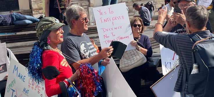Gina Billy, a co-organizer of the Democrats Abroad Greece protest advised, “Try to have common sense conversations with your friends, your neighbors, and encourage everyone you know to register to vote and to turn out to vote. This is how we win!”
