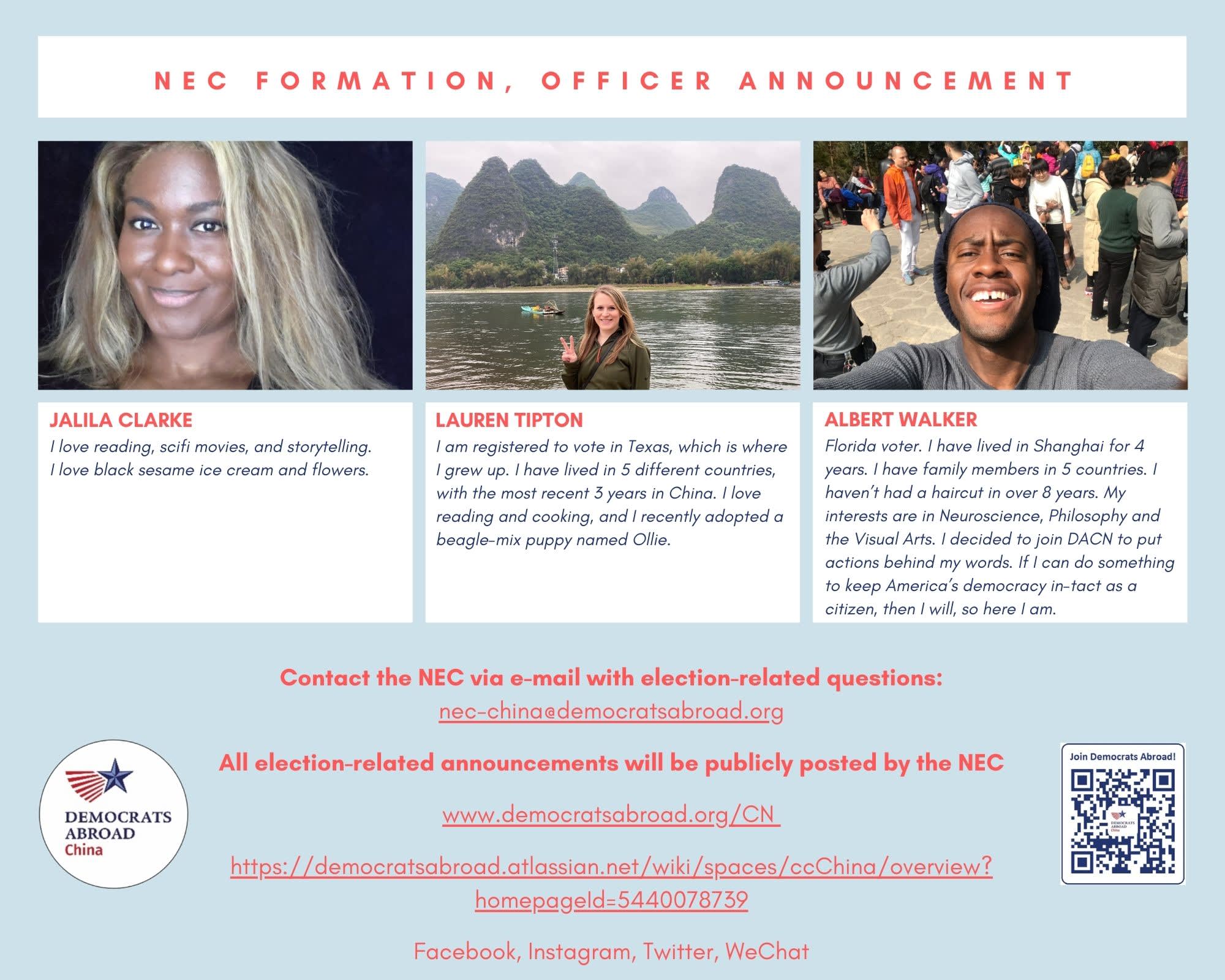 DACN members have risen to the call and volunteered to serve as NEC Officers! The NEC Officers will preside over a special election to fill vacancies within the DACN Leadership Board.