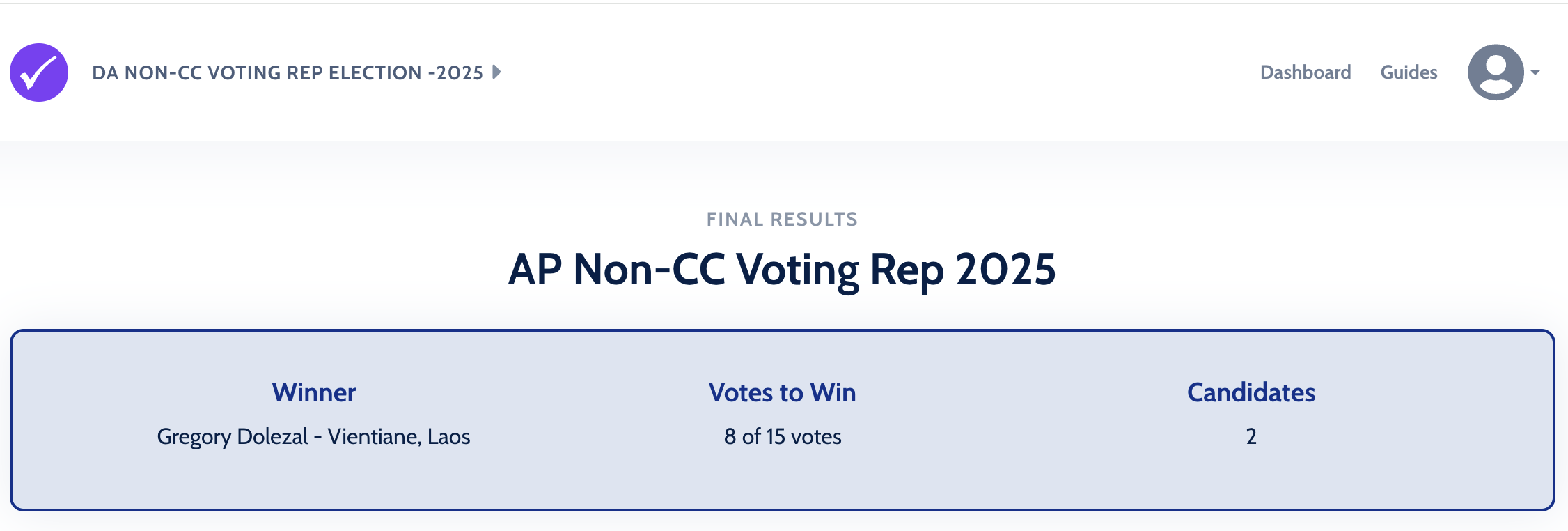 Voting for the Non-Country Committee (NCC) Voting Rep positions closed at midnight (member's local time) on Friday, March 28. On Saturday, March 29, the NCC Nominations and Elections Committee (NCC NEC) held a series of meetings to announce the winners of each election.