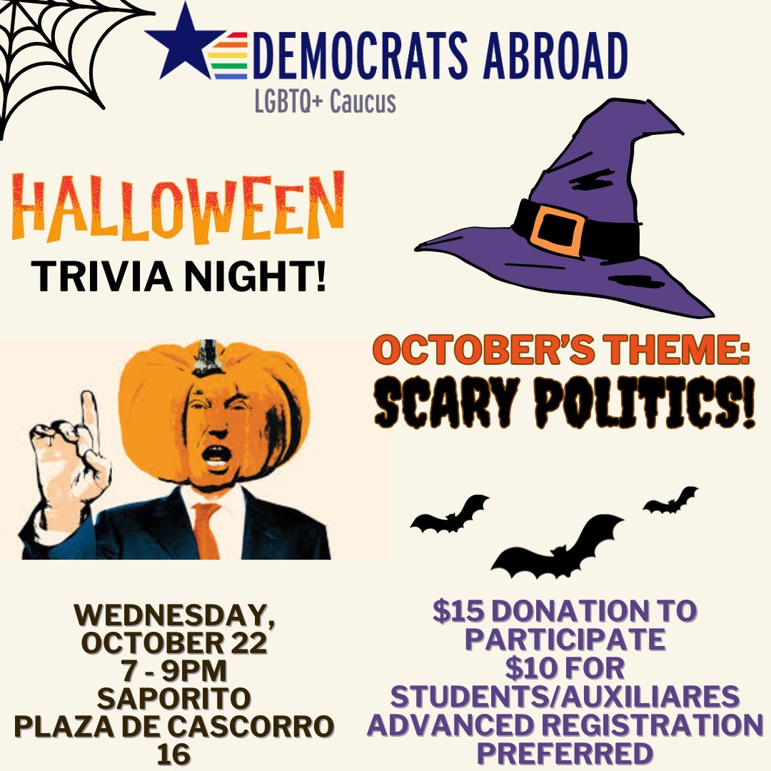 Please join Democrats Abroad Madrid and Spain’s LGBTQ+ Caucus, as we present our October Trivia night in Plaza de Cascorro.