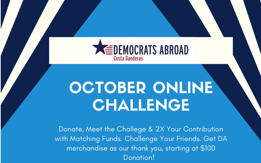 For a limited time, you can DOUBLE your donations to Democrats Abroad Costa Banderas because a few of our local dedicated Democrats have pledged a pool of dollars to match your donations of $50-$500!