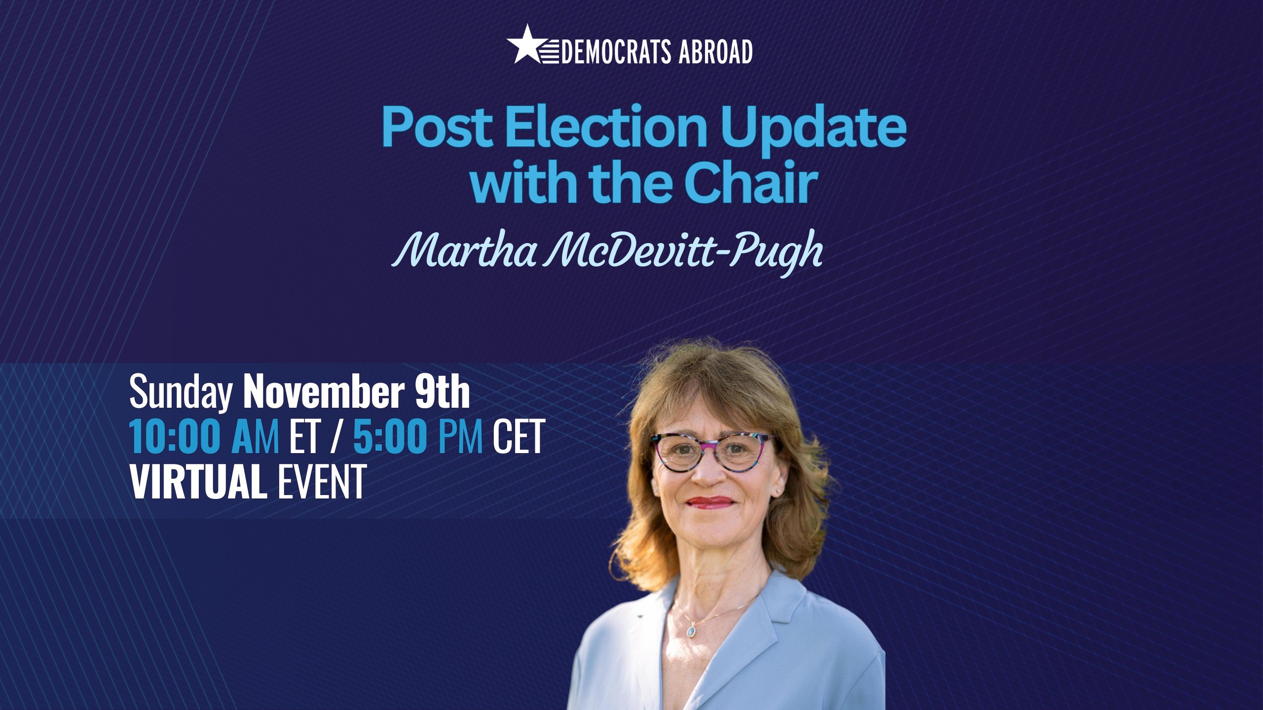 Our Chair, Martha McDevitt-Pugh, will share insights and take your questions and will be joined by special guest Nola Hix, Regional Director for U.S. Territories & Democrats Abroad at the Association of State Democratic Committees (ASDC). Nola is a seasoned strategist and organizer known for her work elevating underrepresented voices and building inclusive communities