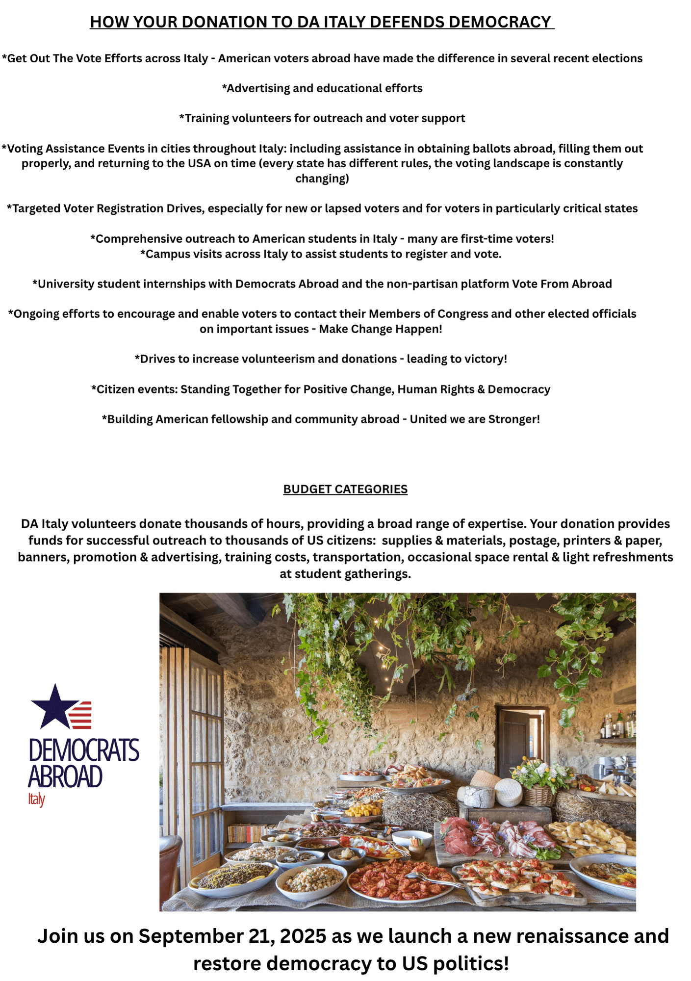 DA News Our Mission Our Leadership DNC Members Our Country Committees UOCAVA - Your Right to Vote from Abroad Our Charter and Platform Our Party Our Impact Our History DA in the NewsJoin DA Find An Event Our Priorities Our Caucuses Phonebanking Volunteer Blue Vote Cafe Podcast Power to the People Podcast