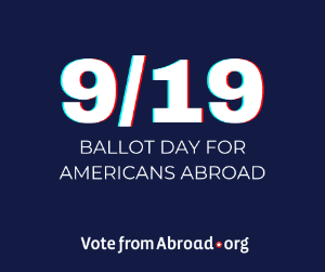 Spread the word to your friends, family, and colleagues that now is the time to take action to vote from overseas. Post on Twitter, Instagram, Facebook, or other social media that you are voting from abroad when you drop off or mail your completed ballot.