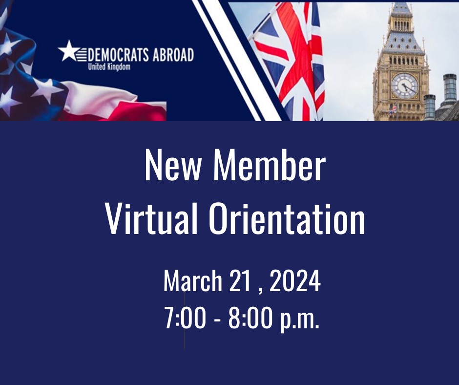 This virtual session will give you an overview of what Democrats Abroad UK is, our Mission, and how we go about doing our important work to get Democrats elected in every election, all across the country. You’ll also get a snapshot of all the ways to get involved, whether through events taking place across the UK, volunteering, or supporting our work.