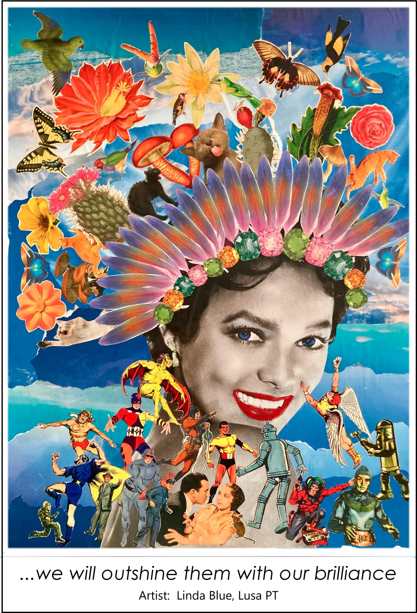 The collage to the left is partially titled “…we will outshine them with our brilliance.” It is in this spirit and with this joy that we want to inspire and mobilize women around the world. We aim to recruit all voices, all ages, all races and all faiths.