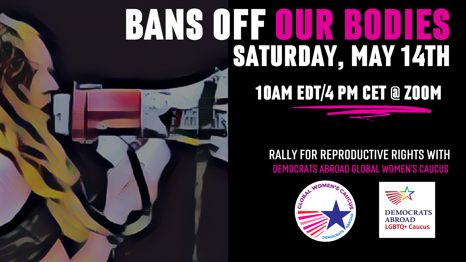 The GWC is organizing a global day of action for Democrats Abroad on SATURDAY, MAY 14, 2022, to support the national day of action in the US. We want you to show up where you live to show our solidarity with our allies mobilizing in the U.S. and tell the Senate to save Roe.